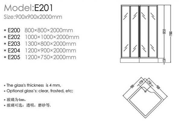 :Size:900X900X2000mm