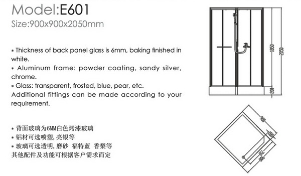 :Size:900X900X2050mm